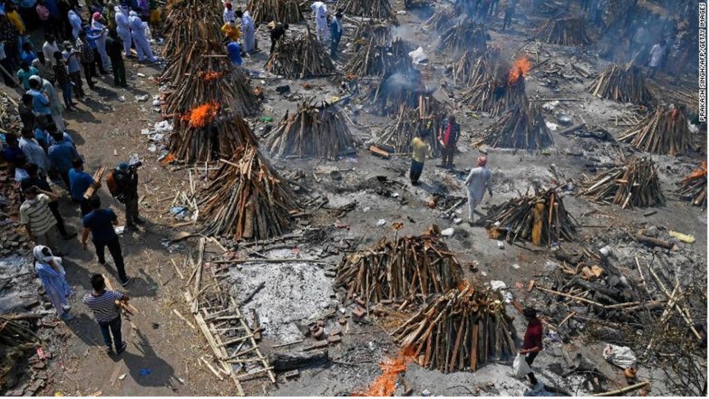 I crematori delle città più colpite sono aperti giorno e notte, con famiglie costrette a rimanere in fila per ore. I numeri dei contagi e dei decessi ufficiali potrebbero però essere diversi da quelli effettivi, considerando che a Nuova Delhi si possono trovare pire funerarie anche nel parcheggio di un crematorio, e che nel fiume Gange sono stati rinvenuti più di un centinaio di corpi. Vanno considerati, per le famiglie più povere, oltre ai tempi di attesa, i crescenti prezzi dei servizi funerari