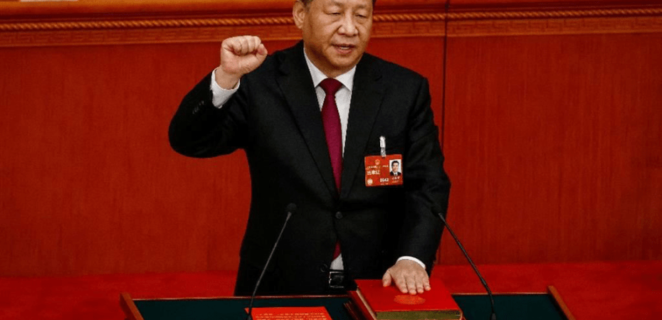 Il giuramento, con il pugno destro alzato e la mano sinistra sulla Costituzione rilegata in pelle rossa, è stato la celebrazione dei successi del Presidente, che è diventato il capo di Stato in carica per maggior tempo nella storia della Repubblica Popolare Cinese e che con questa elezione si è confermato essere il leader più potente dai tempi di Mao Tse-Tung.
