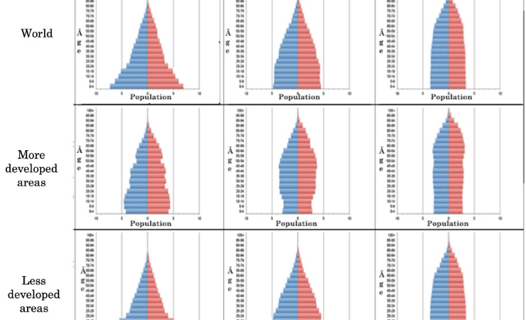 Nei paesi più sviluppati, invece, si osserva un’altra situazione: la piramide è più schiacciata in basso, e a volte ha addirittura dei picchi di larghezza in età adulta o anziana. È questo il caso dell’Europa e dell’Occidente in generale, dove il tasso di fertilità è sempre più basso e il ricambio generazionale è in pericolo.