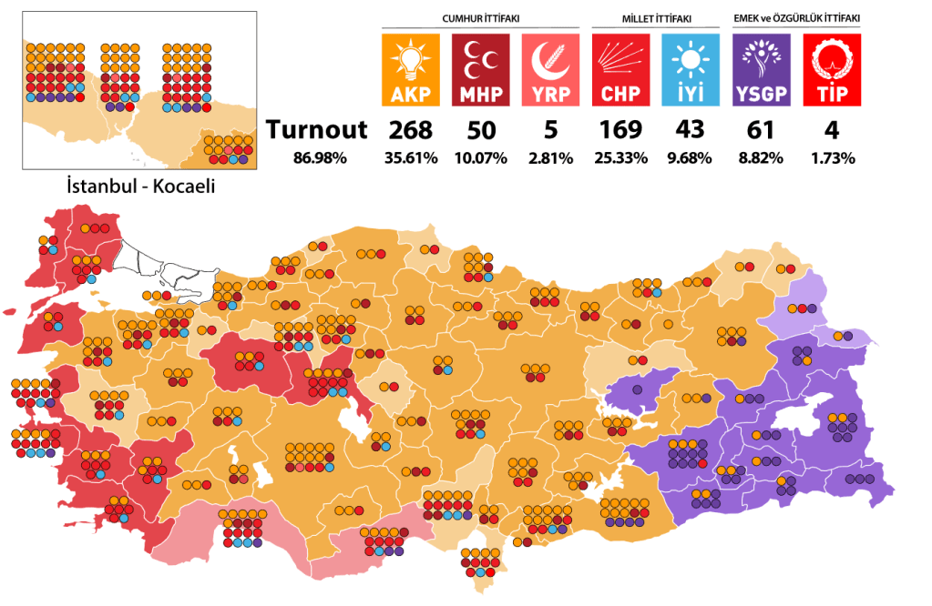 The elections were held simultaneously for the Turkish Grand National Assembly members and the presidency. Over 30 political parties participated in the parliamentary elections. However, in order for a party to enter the parliament in Türkiye, it needs to receive a minimum of 7% of the votes, otherwise, the votes of the party that fails to pass the threshold do not have an impact. As a solution to this, parties chose to form alliances.