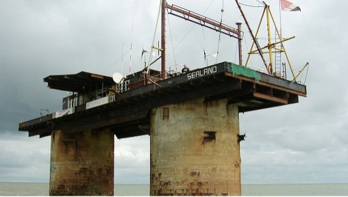 Tuttavia, la storia della piattaforma era ben lungi dal giungere al proprio epilogo. A metà degli anni 60’, si assistette al fenomeno dell’“età dell’oro” della pirateria radiofonica, ossia alla fondazione di trasmissioni radiofoniche non autorizzate e senza licenza, con una ricezione destinata al grande pubblico. In diversi casi i bucanieri radiofonici, per aggirare la legge inglese, si stabilirono appena al di fuori delle acque territoriali del paese proprio su alcune fortezze Maunsell ormai dismesse. Fu proprio in questo contesto che, nel 1965, Paddy Roy Bates, ex maggiore dell’esercito britannico durante la Seconda guerra mondiale e in seguito imprenditore ittico, si stabilì sull’ex fortezza Maunsell di Knock John. Dopo aver allontanato i precedenti occupanti, vi fondò la sua radio pirata, “Radio Essex”. Tuttavia, la piattaforma si trovava troppo vicina alle coste inglesi (entro le tre miglia nautiche dal territorio nazionale), circostanza che spinse le autorità di Londra a portare Bates in tribunale. A quel punto, egli decise di trasferirsi in acque più internazionali e, nel 1966, insieme al figlio Michael, si stabilì su Fort Roughs.