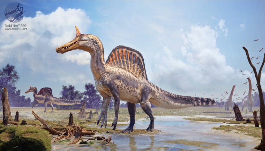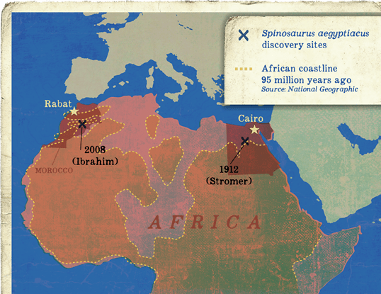 Tutto questo solo per mostrare quanto, negli anni passati, la concezione dello spinosauro sia stata distorta rispetto alla realtà da film e documentari. La storia dello spinosauro, in particolare della prima e fino al mese scorso unica sottospecie s. aegyptiacus, è travagliata e fa da monito a tutti coloro che sono interessati alle scienze: i primi fossili, trovati da un paleontologo tedesco nel 1912 e descritti come resti di una nuova specie nel 1915, andarono distrutti nel 1944 durante un bombardamento degli alleati a Monaco di Baviera; purtroppo, oltre a essere i primi fossili di spinosauro, fino ad allora erano anche gli unici, e le ricostruzioni della specie proposte negli anni successivi non furono altro che tentativi basati sulle poche foto e descrizioni ancora disponibili. In tempi più recenti sono stati trovati nuovi fossili che ci hanno permesso di ricostruirlo con un margine d’errore meno ampio, e proprio per questo negli ultimi 10-11 anni ha avuto luogo il dibattito che con la scoperta della nuova sottospecie ha finalmente (con ogni probabilità) raggiunto un consensus: lo spinosauro pescava semisommerso come un airone o nuotava come un coccodrillo? Questo dibattito nacque con la scoperta di nuovi fossili di spinosauro in Marocco, lungo quelle che circa 90 milioni di anni fa sarebbero state le coste dell’Oceano Atlantico, quando il paleontologo Nizar Ibrahim, colui che trovò i fossili, teorizzò che le zampe posteriori erano troppo corte per sostenere uno stile di vita puramente terrestre, e più adatte a nuotare che a camminare anche grazie alla loro alta densità.